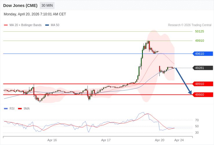 Klíčová slova: Intradenní výhled | Dow Jones | Indikátor | Pozice | RSI | Rezistence | Short | Trading | Pivot | Trading Central | Supporty a rezistence | Výhled | Krátké (short) pozice | Indikátor RSI | Růst | Supporty |