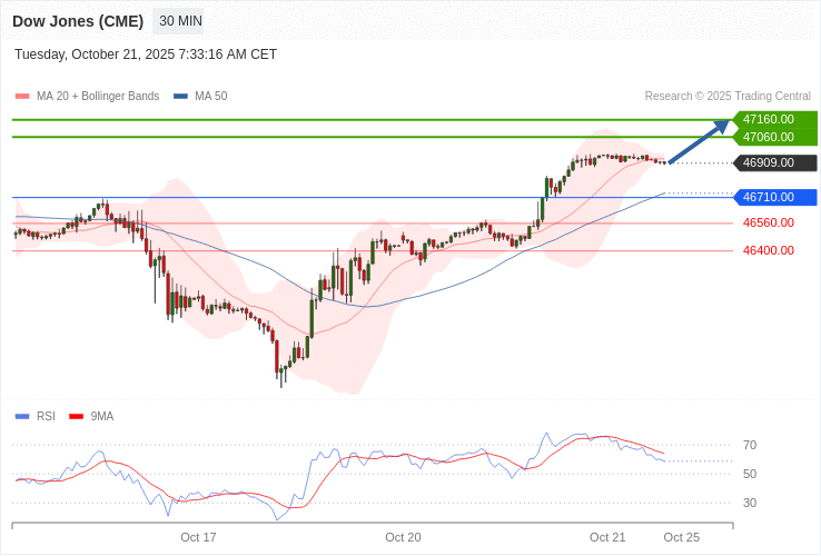 Klíčová slova: Intradenní výhled | Dow Jones | Indikátor | Long | Pozice | RSI | Rezistence | Trading | Pivot | Trading Central | Supporty a rezistence | Výhled | Pokles | Indikátor RSI | Dlouhé (long) pozice | Supporty |