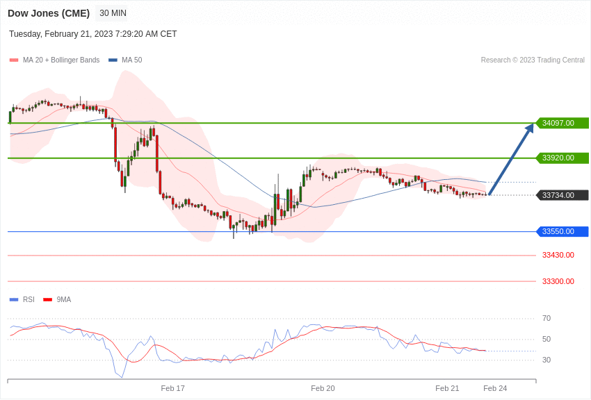 Klíčová slova: Intradenní výhled | Dow Jones | Konsolidace | Long | Pozice | Rezistence | Trading | Pivot | Trading Central | Supporty a rezistence | Výhled | Pokles | Dlouhé (long) pozice |