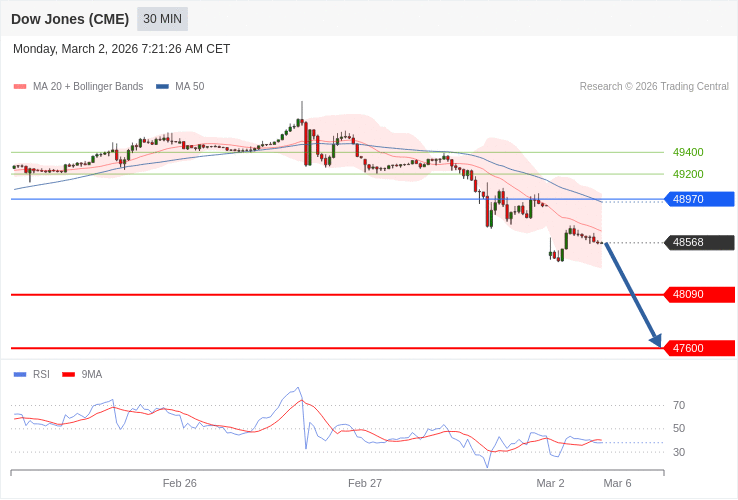 Dow Jones - Intradenní výhled 2.3.2026