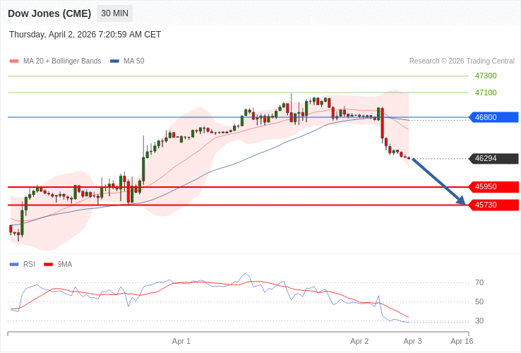 Dow Jones - Intradenní výhled 2.4.2026