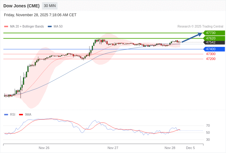 Dow Jones - Intradenní výhled 28.11.2025
