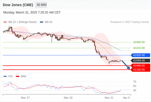 Preferovaný scénář: Krátké (short) pozice pod 41 920 s cílem na 41 490 a dále pak až na 41 320.
