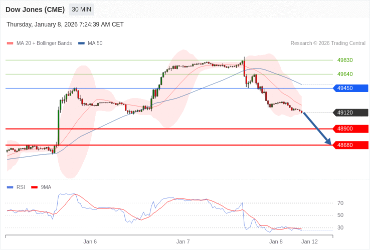 Klíčová slova: Intradenní výhled | Dow Jones | Indikátor | Pozice | RSI | Rezistence | Short | Trading | Pivot | Trading Central | Supporty a rezistence | Výhled | Krátké (short) pozice | Indikátor RSI | Růst | Supporty |