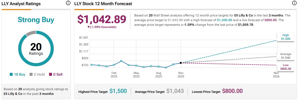(Cenová predikce pro akcie Eli Lilly od analytiků z Wall Street Zdroj: tipranks.com)
