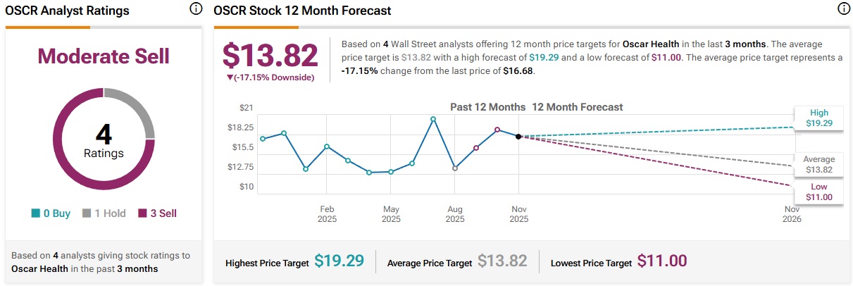 (Cenová predikce pro akcie Oscar Health od analytiků z Wall Street Zdroj: tipranks.com)