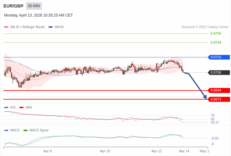 EUR/GBP - Intradenní výhled 13.4.2026