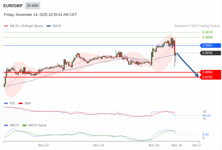 EUR/GBP - Intradenní výhled 14.11.2025