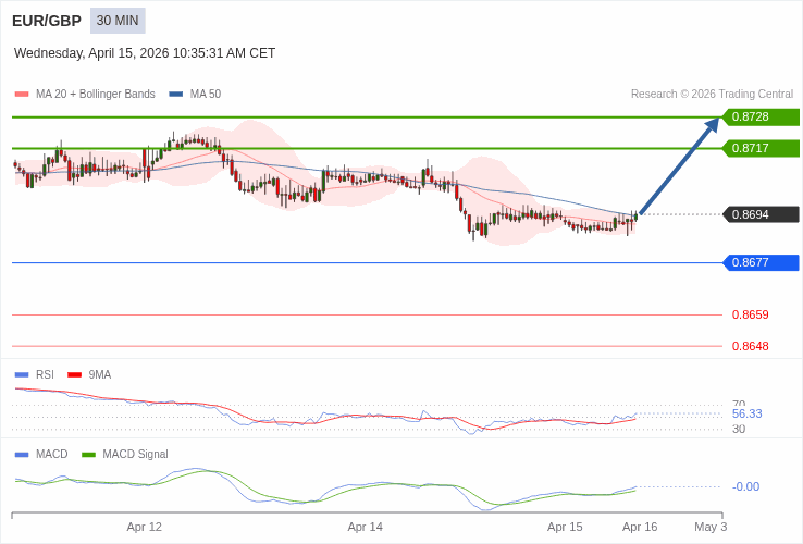 Klíčová slova: Intradenní výhled | EUR/GBP | Indikátor | Long | Pozice | RSI | Rezistence | Trading | EUR | GBP | Pivot | Trading Central | Supporty a rezistence | Výhled | Pokles | Indikátor RSI | Dlouhé (long) pozice | Supporty |