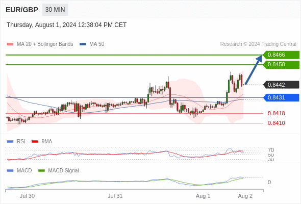 Preferovaný scénář: Dlouhé (long) pozice nad 0,8431 s cílem na 0,8458 a dále pak až na 0,8466.
