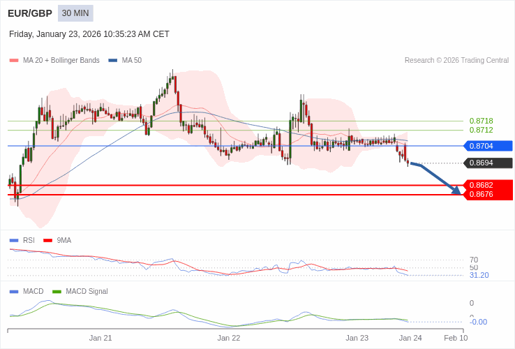 EUR/GBP - Intradenní výhled 23.1.2025 Intradenní výhledy a analýzy jsou dostupné pouze pro členy VIP zóny FXstreet.cz. Pokud se stanete členem naší VIP zóny, tak získáte přístup ke všem intradenním výhledům a analýzám.