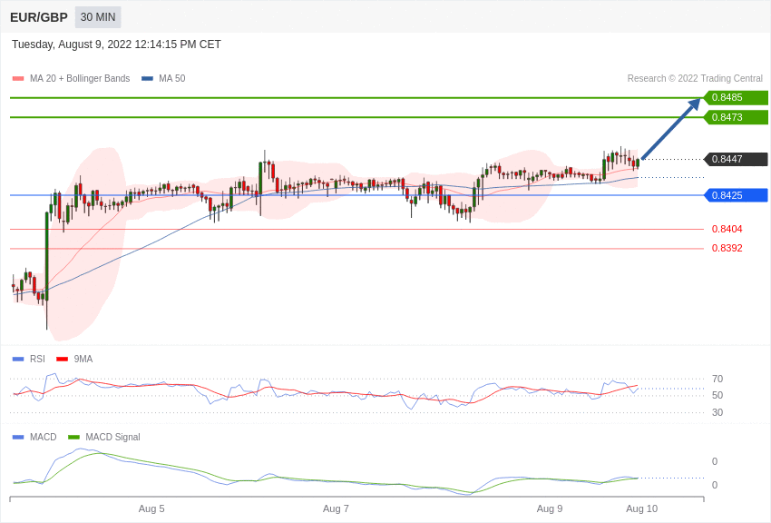 Klíčová slova: Intradenní výhled | EUR/GBP | Indikátor | Long | Pozice | RSI | Rezistence | Trading | EUR | GBP | Pivot | Trading Central | Supporty a rezistence | Výhled | Pokles | Indikátor RSI | Dlouhé (long) pozice |