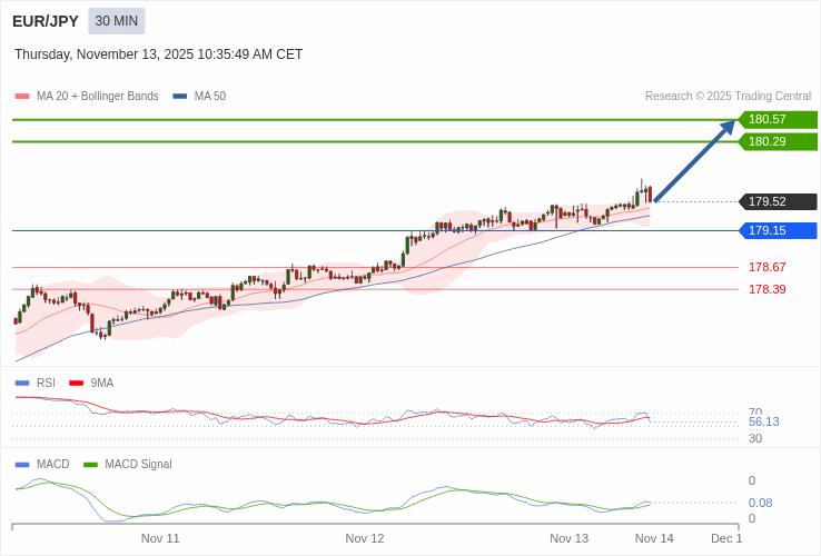 Klíčová slova: Intradenní výhled | EUR/JPY | Indikátor | Long | Pozice | RSI | Rezistence | Trading | EUR | JPY | Pivot | Trading Central | Supporty a rezistence | Výhled | Pokles | Indikátor RSI | Dlouhé (long) pozice | Supporty |