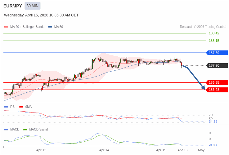 EUR/JPY - Intradenní výhled 15.4.2026