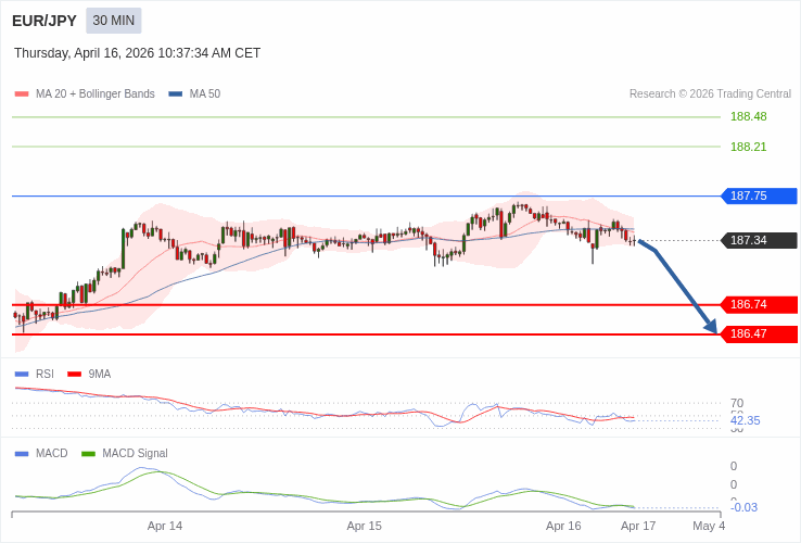 Klíčová slova: Intradenní výhled | EUR/JPY | Indikátor | Pozice | RSI | Rezistence | Short | Trading | EUR | JPY | Pivot | Trading Central | Supporty a rezistence | Výhled | Krátké (short) pozice | Indikátor RSI | Růst | Supporty |