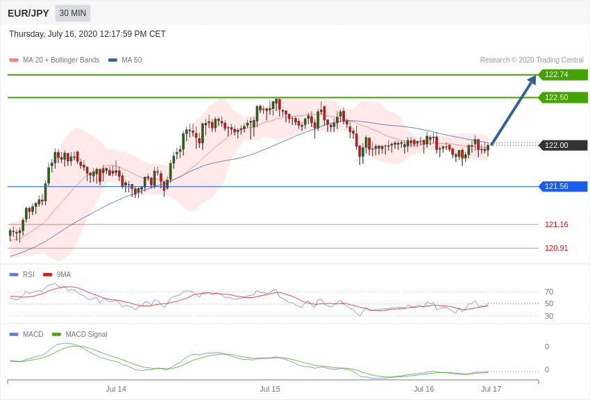 Preferovaný scénář: Dlouhé (long) pozice nad 121,56 s cílem na 122,50 a dále pak až na 122,74.