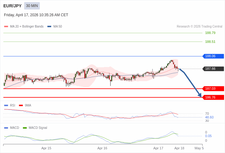 EUR/JPY - Intradenní výhled 17.4.2026