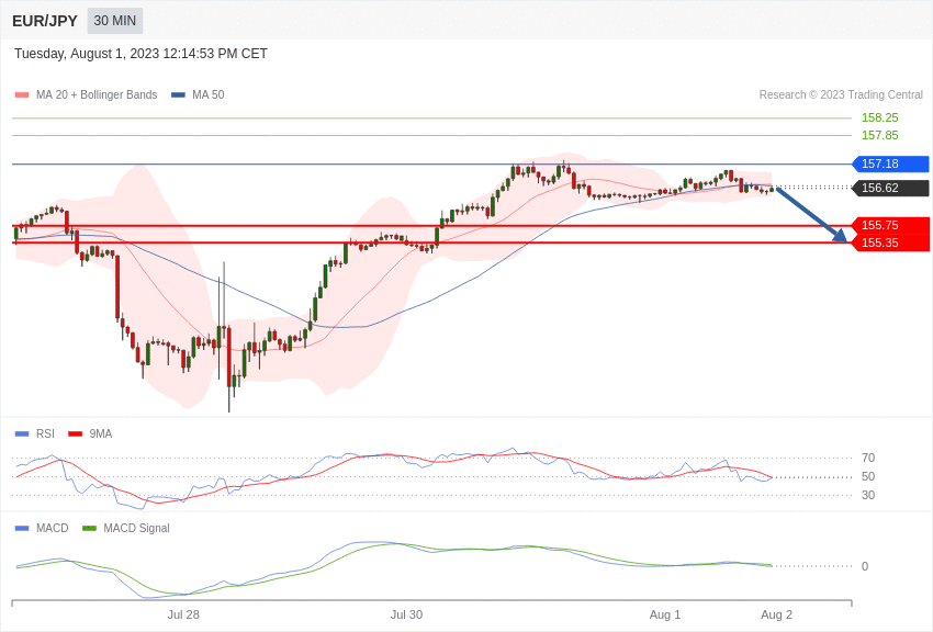 EUR/JPY - Intradenní výhled 1.8.2023