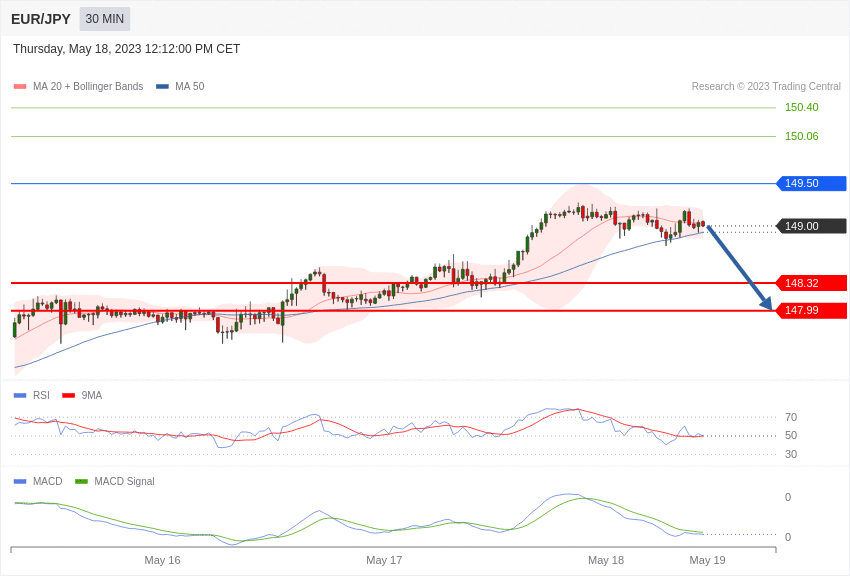 EUR/JPY - Intradenní výhled 18.5.2023