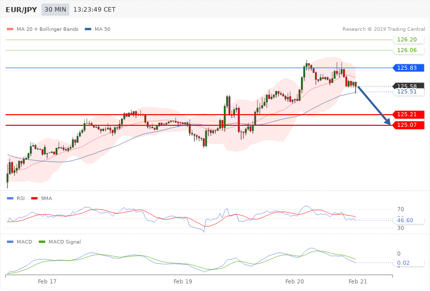 Klíčová slova: Intradenní výhled | EUR/JPY | Indikátor | Pozice | RSI | Rezistence | Short | Trading | EUR | JPY | Pivot | Trading Central | Supporty a rezistence | Výhled |