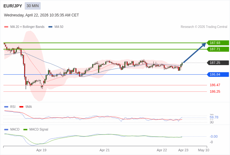 EUR/JPY - Intradenní výhled 22.4.2026