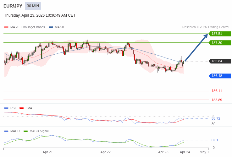 EUR/JPY - Intradenní výhled 23.4.2026
