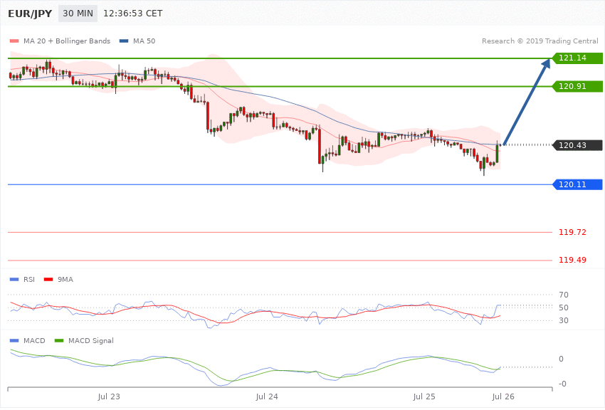 EUR/JPY - Intradenní výhled 25.7.2019
