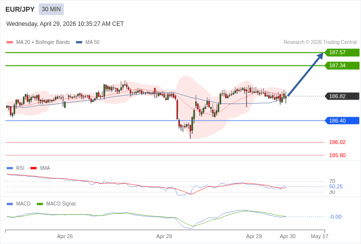 Klíčová slova: Intradenní výhled | EUR/JPY | Indikátor | Long | Pozice | RSI | Rezistence | Trading | EUR | JPY | Pivot | Trading Central | Supporty a rezistence | Výhled | Pokles | Indikátor RSI | Dlouhé (long) pozice | Supporty |