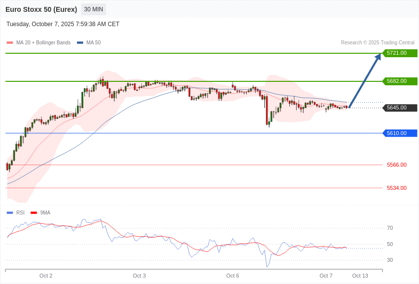 Euro Stoxx 50 (Eurex) - Intradenní výhled 7.10.2025
