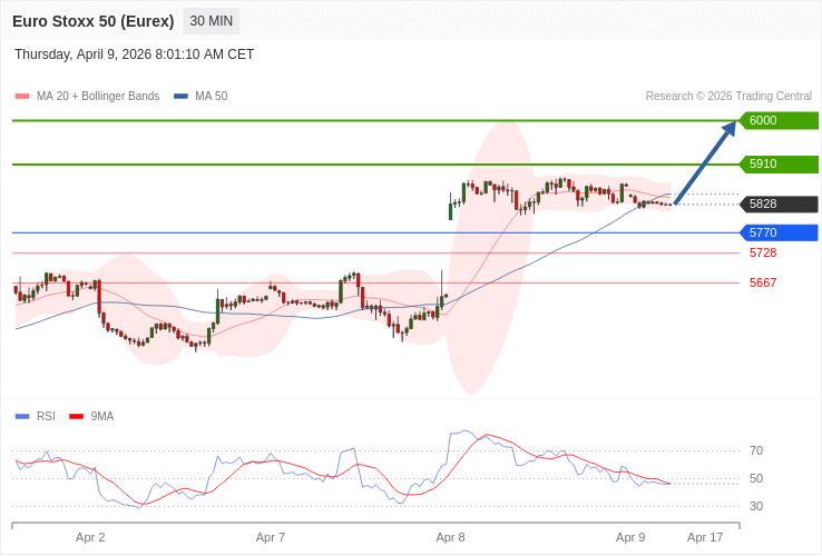Euro Stoxx 50 (Eurex) - Intradenní výhled 9.4.2026