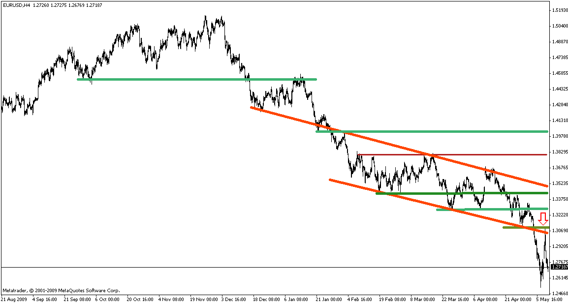 EUR/USD připravuje short obchod v pullback oblasti trendového kanálu