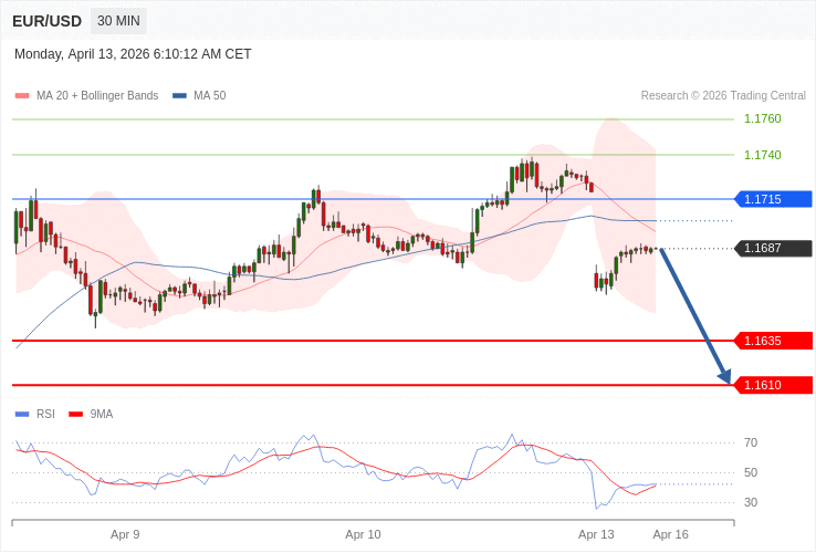 Komentář: Dokud se EUR/USD bude obchodovat pod rezistencí 1,1715, tak je pravděpodobný pohyb do strany s mírnou medvědí tendencí.