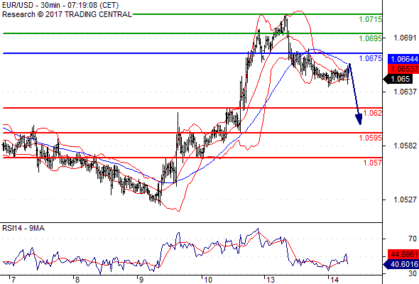 Preferovaný scénář: Krátké (short) pozice pod 1,0675 s cílem na 1,0620 a dále pak až na 1,0595.