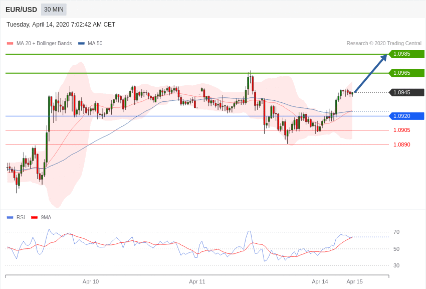 Preferovaný scénář: Dlouhé (long) pozice nad 1,0920 s cílem na 1,0965 a dále pak až na 1,0985.