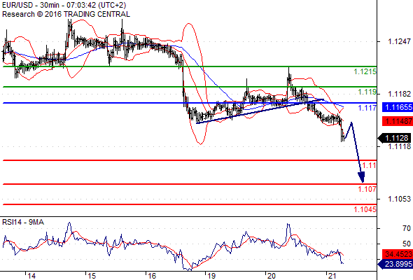 Preferovaný scénář: Krátké (short) pozice pod 1,1170 s cílem na 1,1100 a dále pak až na 1,1070.