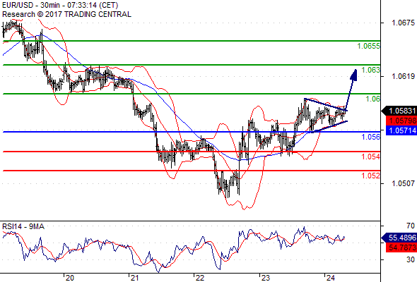 Preferovaný scénář: Dlouhé (long) pozice nad 1,0560 s cílem na 1,0600 a dále pak až na 1,0630.