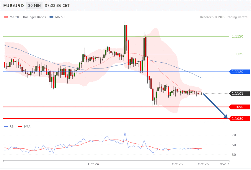 Komentář: Dokud se měnový pár EUR/USD bude obchodovat pod rezistencí 1,1120, tak je pravděpodobný průraz pod hladinu 1,1090.