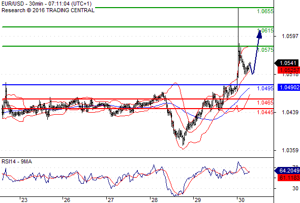 Preferovaný scénář: Dlouhé (long) pozice nad 1,0495 s cílem na 1,0575 a dále pak až na 1,0615.