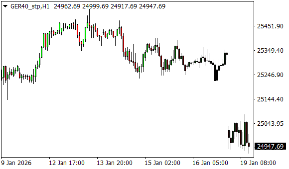 Vývoj akciového indexu DAX (1hodinový graf - H1):