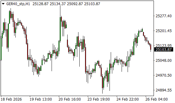 Vývoj akciového indexu DAX (1hodinový graf - H1):