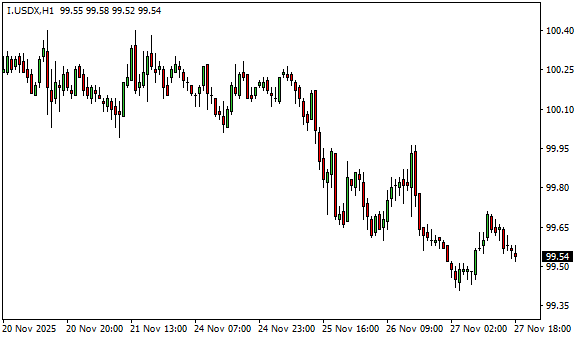 Vývoj dolarového indexu USDX (1hodinový graf - H1):