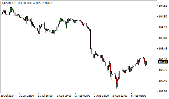 Vývoj dolarového indexu USDX (1hodinový graf - H1):