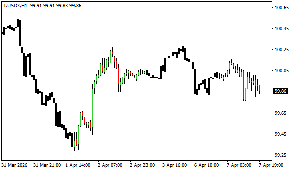 Vývoj dolarového indexu USDX (1hodinový graf - H1):