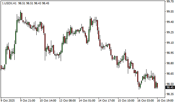 Vývoj dolarového indexu USDX (1hodinový graf - H1):