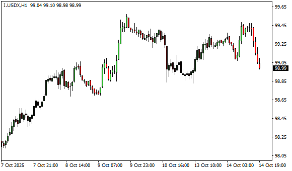 Vývoj dolarového indexu USDX (1hodinový graf - H1):