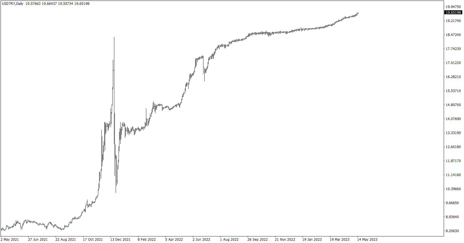 Vývoj měnového páru USD/TRY (denní graf - D1):