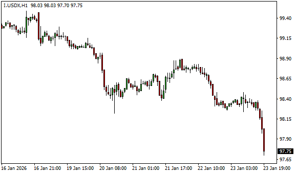 Vývoj dolarového indexu USDX (1hodinový graf - H1):