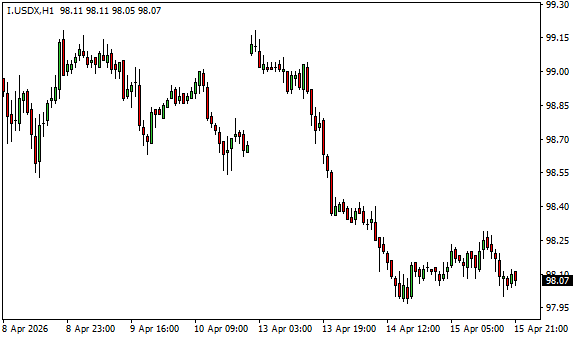 Vývoj dolarového indexu USDX (1hodinový graf - H1):
