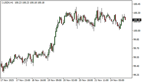 Vývoj dolarového indexu USDX (1hodinový graf - H1):