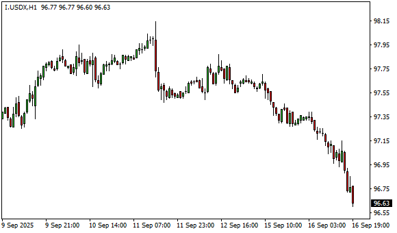 Vývoj dolarového indexu USDX (1hodinový graf - H1):
